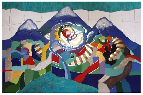 銀張り七宝や銀線七宝と併用すれば、もっと複雑なイメージも表現できるように思います。しかし、大きな七宝作品では、銀線などがほとんど見えなくなり、色彩面の分割のみに使われているようで、制作時間の割に効果が少ないように思えてなりません。