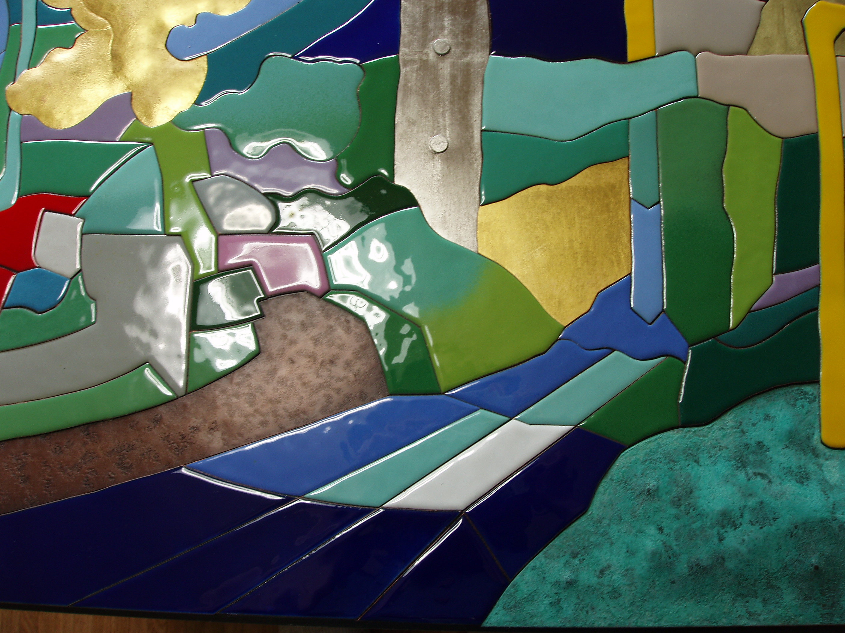 それぞれのパーツごとに、決めておいた配色の釉薬をさし、釉薬の発色に合わせて780度から805度の範囲で、微調整しながら焼成しました。(主に赤系は低温で、青系は高温。焼過ぎに注意)